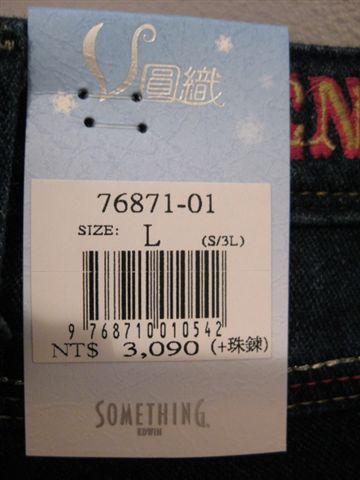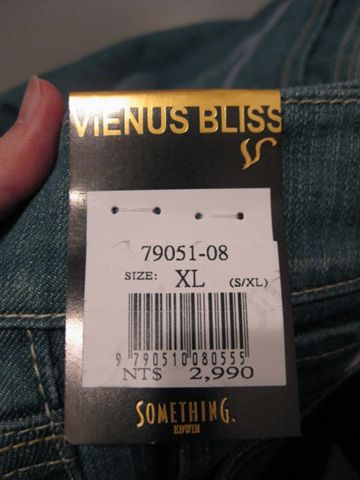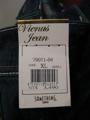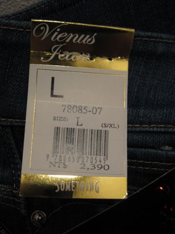 每一件牛仔褲上面的紙標花樣都不一樣喔! 氷肌美感就是雪花狀,這件要價3090,但是小姐拿給我的L不是我的尺寸,所以如果身材跟我差不多的人,建議是拿XL試試看囉。