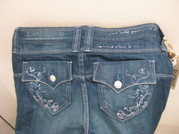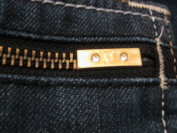 紙標又不一樣了,而且拉鍊的部份也做得很精美,上頭不只有V字樣,還有亮晶晶的水鑚呢~ 同樣也有垂墜的吊飾裝飾屁股口袋。