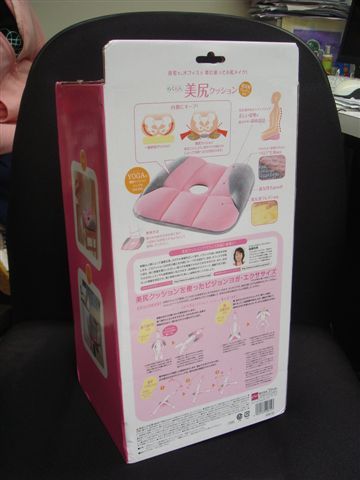 正牌的美臀坐墊是有紙盒的,而且不是普通的瓦楞紙盒或是塑膠袋,上面有印刷精美的使用方式,材質介紹,原廠資料等等,遠遠看來就像芭比娃娃的盒子啊!